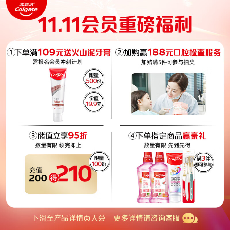为了保证您的购买体验,我们提供各种保障服务,如7天无理由退货、plus会员专享优惠等。同时,高露洁品牌承诺提供优质的服务和支持。