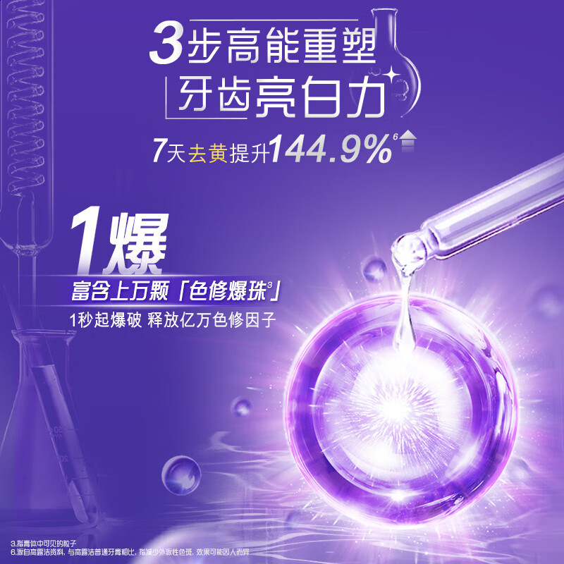 高露洁色修美白牙膏采用独特的紫色彩妆配方,有效去除牙齿表面的污渍,带来持久清新的口气。这款产品广受消费者好评,高达98%的好评率,证明其卓越的功效和质量。