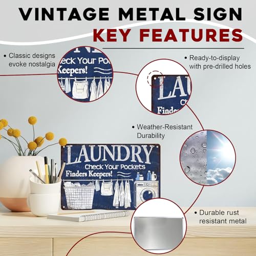 This metal vintage sign is ideal for those looking to add a touch of retro charm to their laundry room, kitchen, or outdoor space. Perfect for home decorators and collectors of vintage designs.
