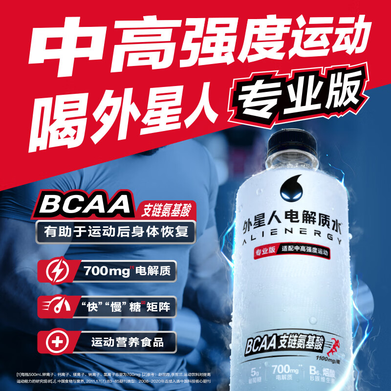 外星人梁王同款电解质水专业版是专为中高强度运动设计的专业补水能量饮料,采用科学配方,有助于在激烈训练或赛事时补充流失的水分与电解质,迅速恢复体力。
