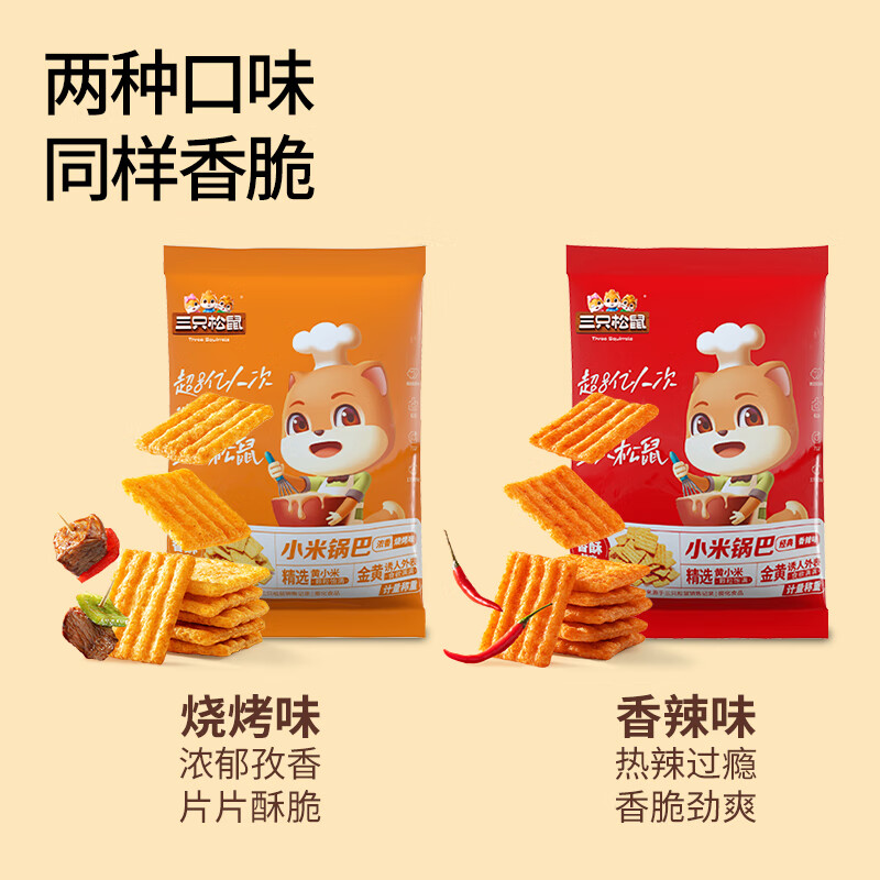 三只松鼠小米锅巴,怀旧解馋零食!这款膨化食品的口感丰富多样,香辣味更让人欲罢不能。无论是作为办公室休闲小食还是聚会分享之选都是上佳之选。