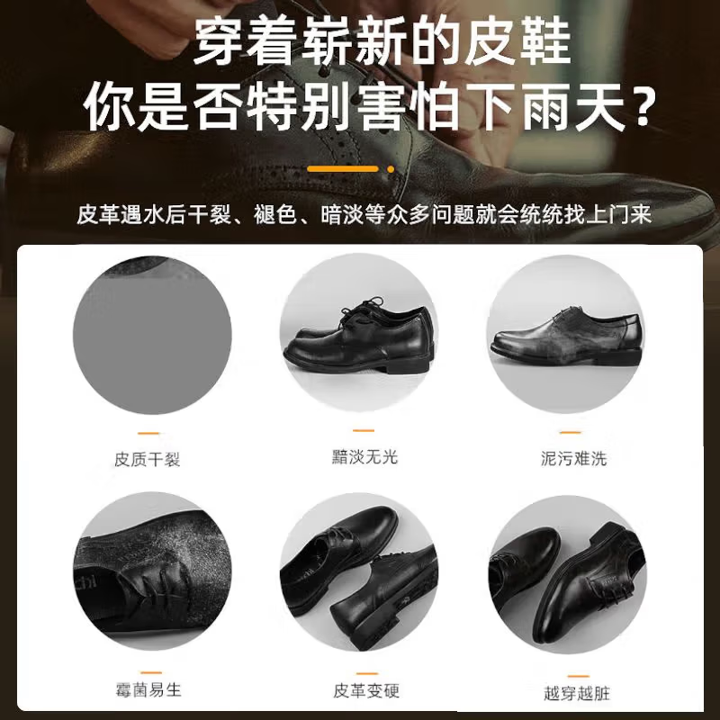 - 高效补色上光:有效修补磨损、划痕,恢复皮鞋光泽度。