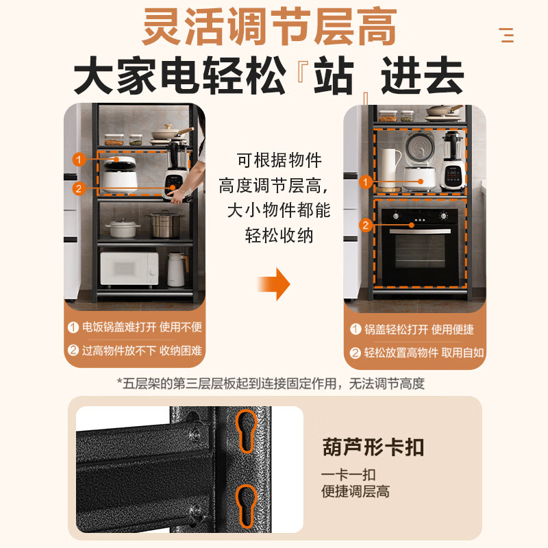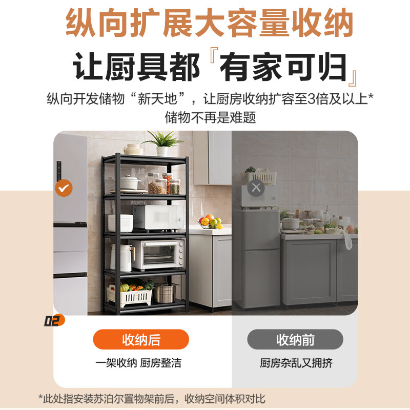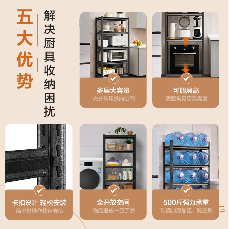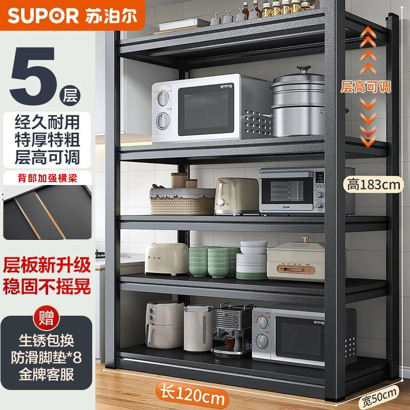 苏泊尔厨房置物架落地多功能收纳货架微波炉烤箱架子多层夹缝锅具储物架【5层升级特厚】,现仅售299元!