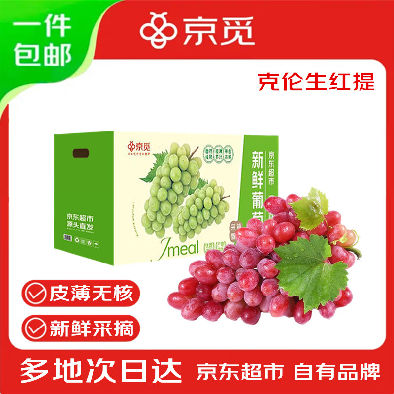 京觅 克伦生无籽红提葡萄4斤装,仅售49.9元