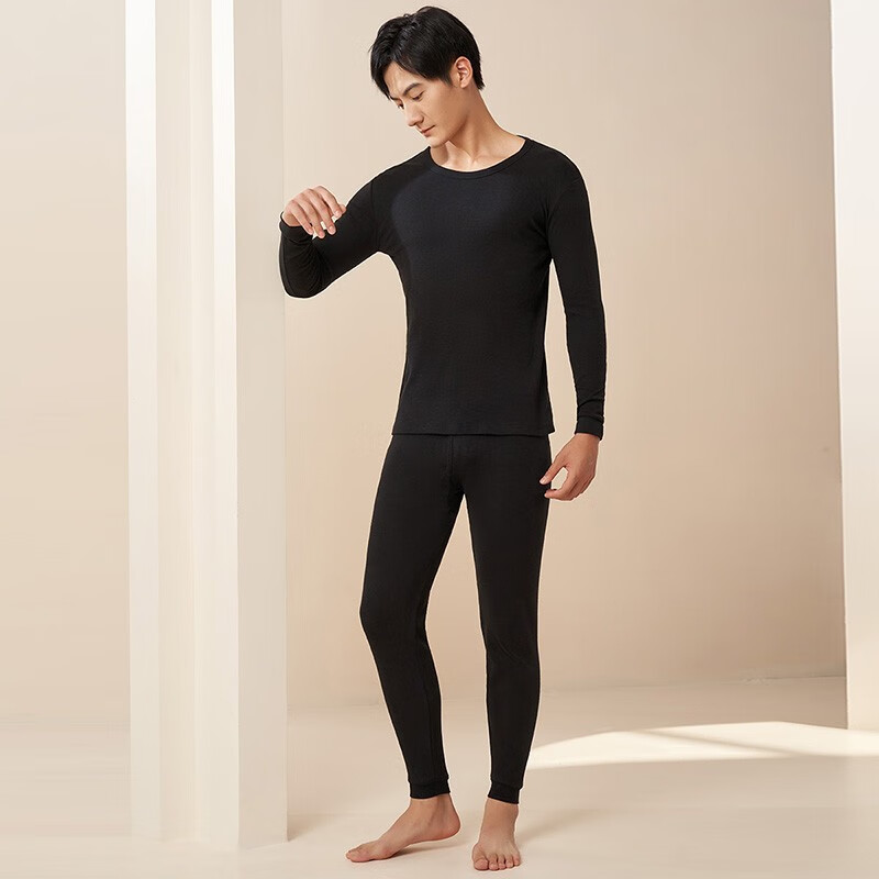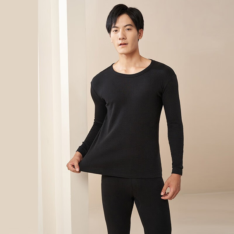 宜而爽情侣秋衣套装黑色L,仅售 49.9 元!