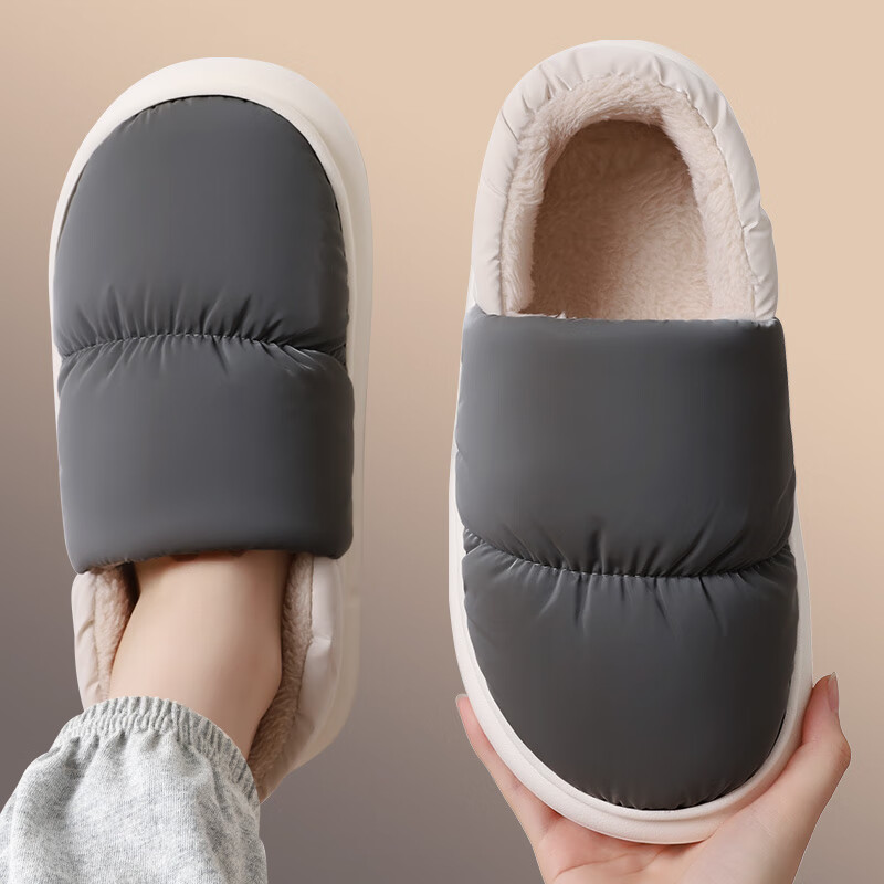 利达妮(TZLDN)防水全包棉拖鞋男士秋冬居家居防滑保暖包跟羽绒棉鞋女毛拖鞋冬季 灰色【适合41-42】,现仅售 ¥25.9!