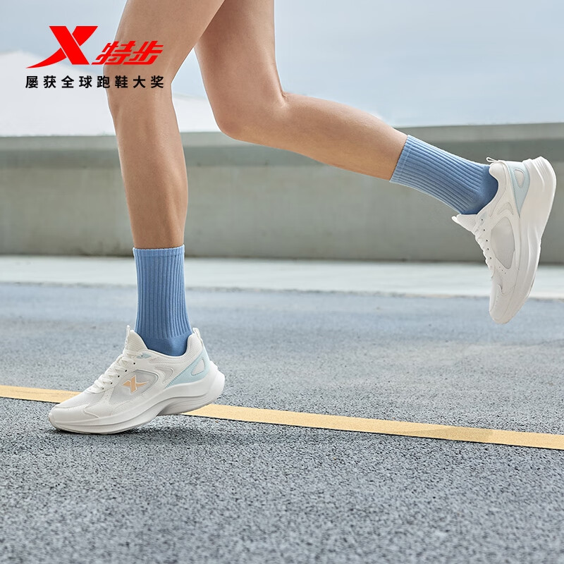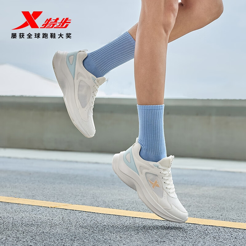 特步女子跑步鞋运动鞋冬季新款网面透气轻便减震休闲跑鞋