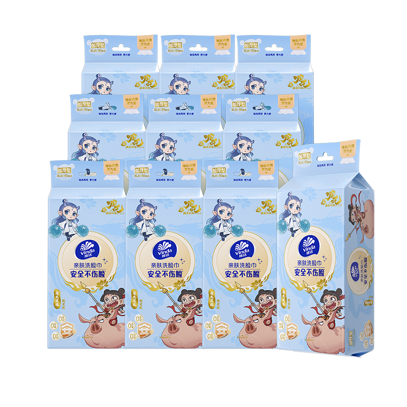 维达x《哪吒2》联名款洗脸巾,为追求高品质生活的您带来全新体验。每提包含 50 抽洗脸巾,共有 10 提的超大容量,让每一次清洁都变得轻松愉快。
