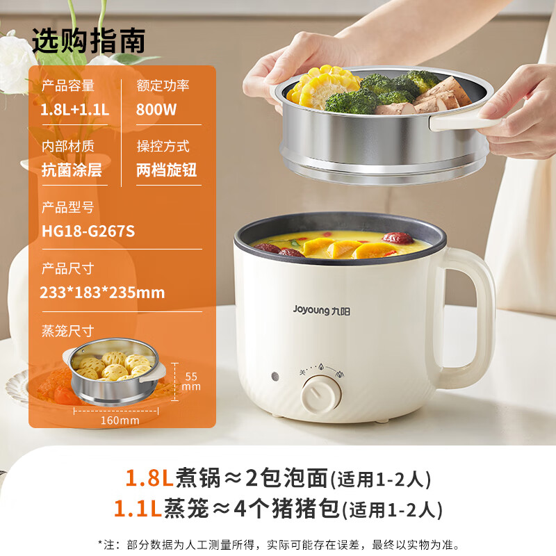 九阳HG18-G267S多功能电热锅是您厨房生活的得力助手,无论是烹饪还是日常饮食都有着不可替代的作用。赶紧行动起来吧!