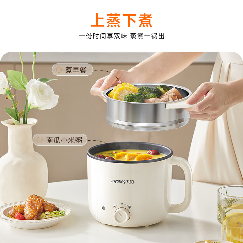 九阳推出的这款多功能电热锅HG18-G267S是专为现代家庭和宿舍设计的理想烹饪设备。该电煮锅容量1.8升,非常适合1-2人的小范围使用。它不仅可以在厨房内作为火锅、汤锅或者蒸菜工具,还可以轻松应对泡面和其他速食需求。
