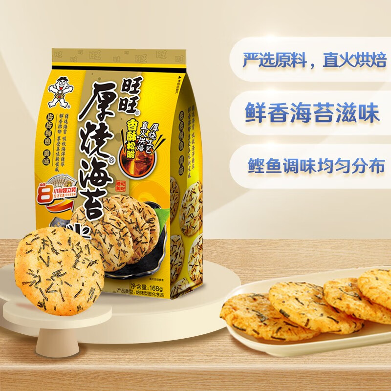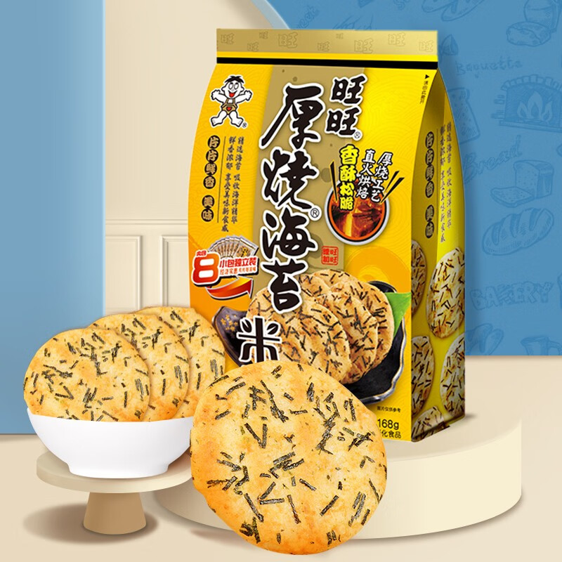 旺旺厚烧海苔米饼 网红休闲零食,酥脆美味!
