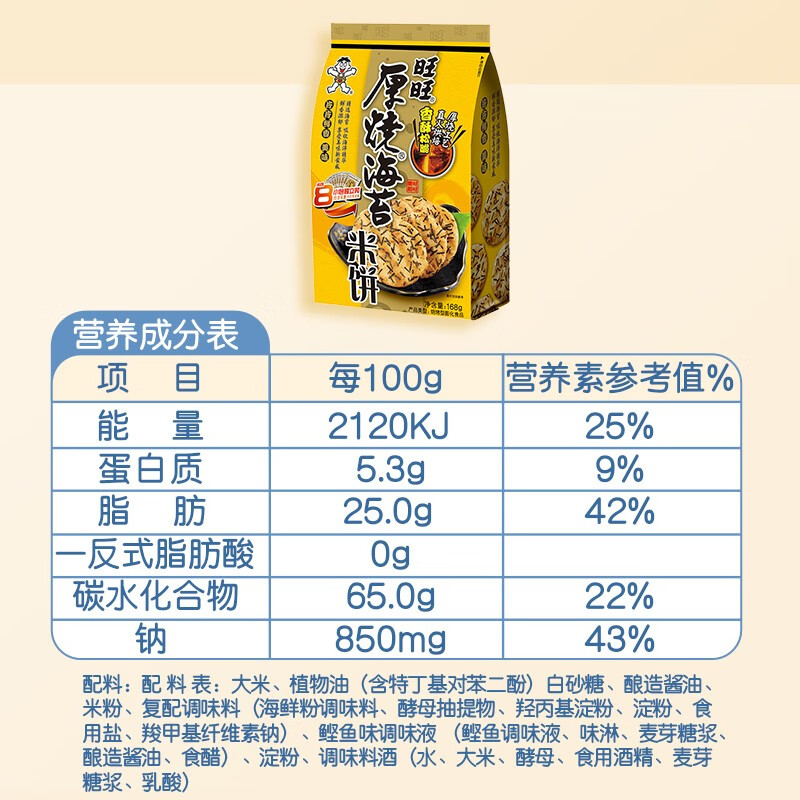 - 好评如潮:99%的好评率证明了旺旺厚烧海苔米饼的超高品质和美味口感。