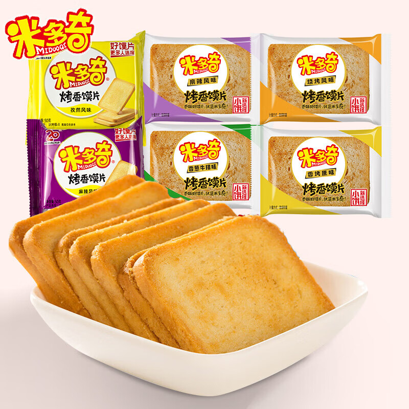 米多奇烤馍片代餐充饥休闲零食原味烤香馍片宿舍整箱 椒盐味 15片5包