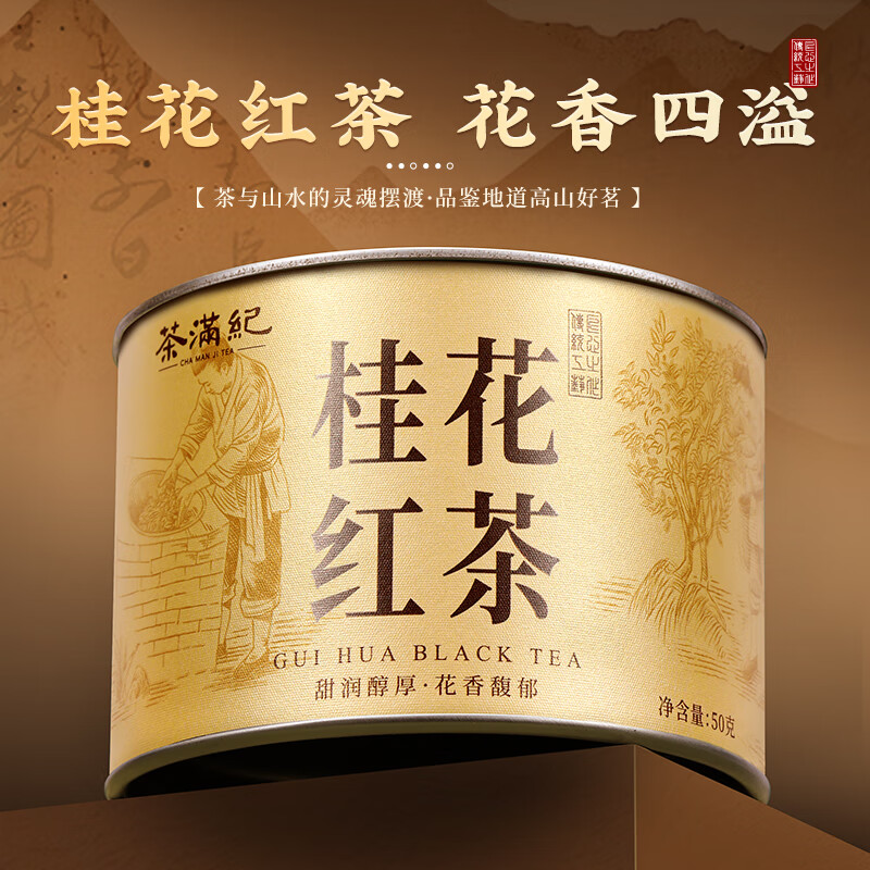 茶满纪桂花红茶小种红茶新茶搭配丹桂花浓香型,一盒50克的口粮装,现价只需20元!