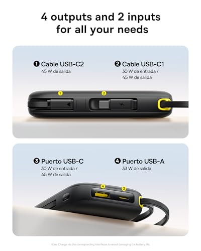 - Charging Power: Up to 45W (USB-C), up to 30W for power bank charging