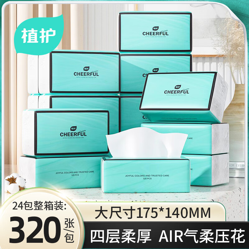 植护原木抽纸餐巾纸 亲肤面纸巾(320张/包)悦色蓝 4层 80抽*24包