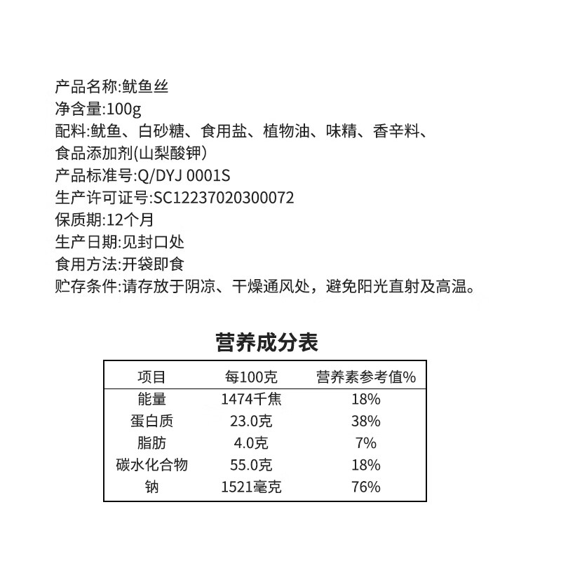 - 精选原料:选用优质深海鱿鱼作为原材料;