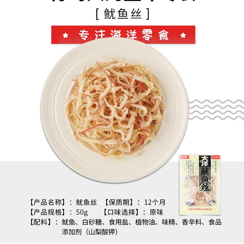 大洋船长大洋100g鱿鱼丝海鲜即食休闲零食炭烤鱿鱼丝山东青岛特产伴手礼,优惠价仅售22元!