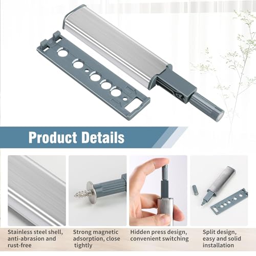 These magnetic push door closures are perfect for homeowners looking to upgrade their kitchen, bathroom, or other room furniture with a modern and functional solution. Ideal for DIY enthusiasts and those who prefer minimalist designs.