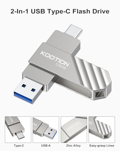 KOOTION’s U600-Silver USB-C flash drive offers a compact solution for high-speed data transfer, featuring both USB-A and USB-C connectors. With its durable zinc alloy casing and 360-degree rotating cap, it ensures reliable performance in various devices.