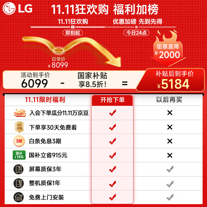 LGC5系列 42英寸 OLED 游戏电视 – 现在只要 8873 元!这款高端电视配备了144Hz高刷新率与4K超高清专业电竞屏幕,为您的游戏和娱乐体验带来无与伦比的清晰度与流畅性。它不仅支持国家补贴最高减15%,让您以更优惠的价格享受顶级性能;还有7天无忧退货政策保驾护航。