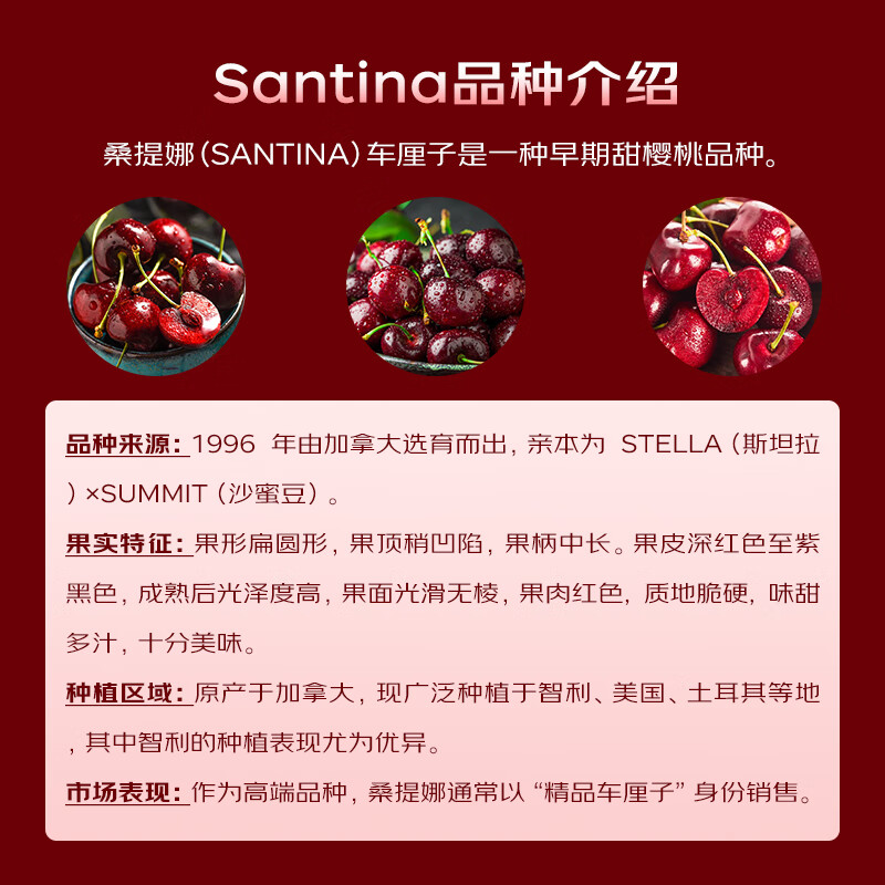 - 智利进口:严选智利优质车厘子,保证每一颗都新鲜可口。