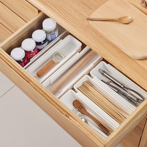 This expandable utensil organizer is ideal for anyone seeking a versatile, space-saving storage solution for their kitchen drawers or other areas of the house. Perfect for households with limited counter and drawer space.