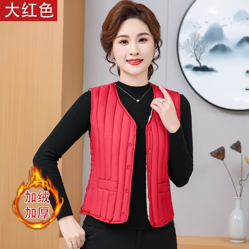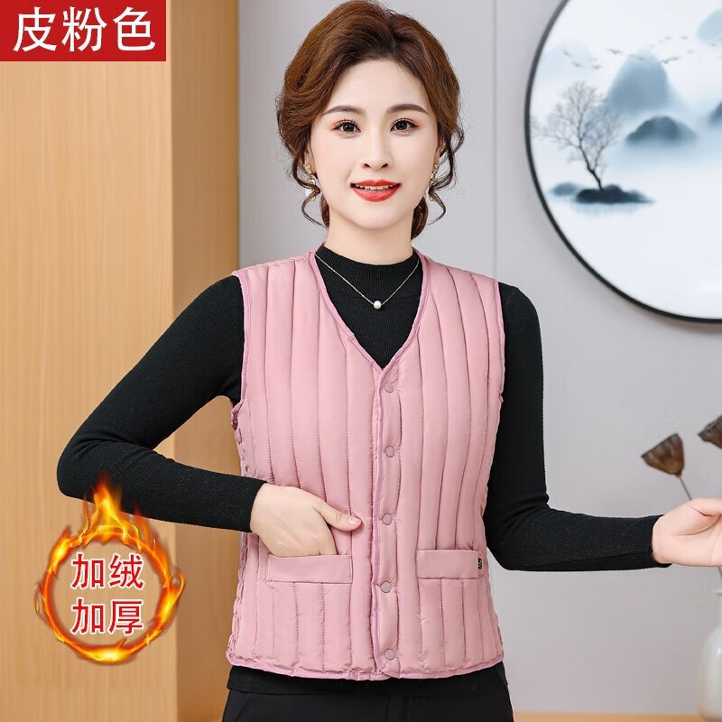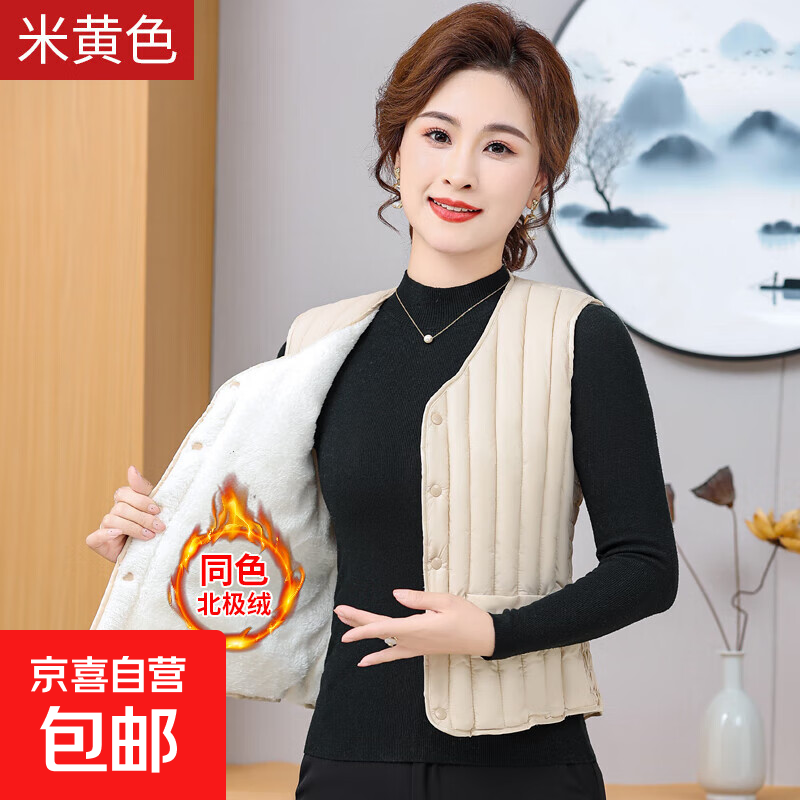 这款秋冬季保暖羽绒棉马甲,采用米黄色设计,为您的秋冬穿搭增添一抹亮丽的风景。它具有修身剪裁、加厚加绒的特点,特别适合90斤-115斤的大码女性穿着。不仅保暖性好,还能有效保护身体不受寒风侵袭。