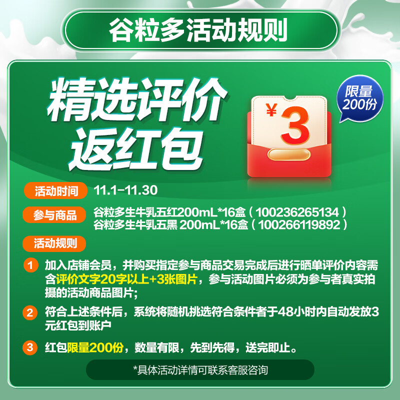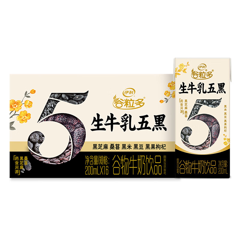 伊利谷粒多生牛乳五黑 200ml*16盒 礼盒装 – ¥48