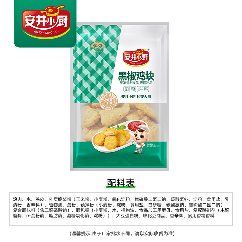 安井小厨 ANJOY XIAOCHU 黑椒鸡块 2斤装1kg 上校鸡块麦乐鸡炸鸡 空气炸锅油炸小吃,38.8元即可享受美味!
