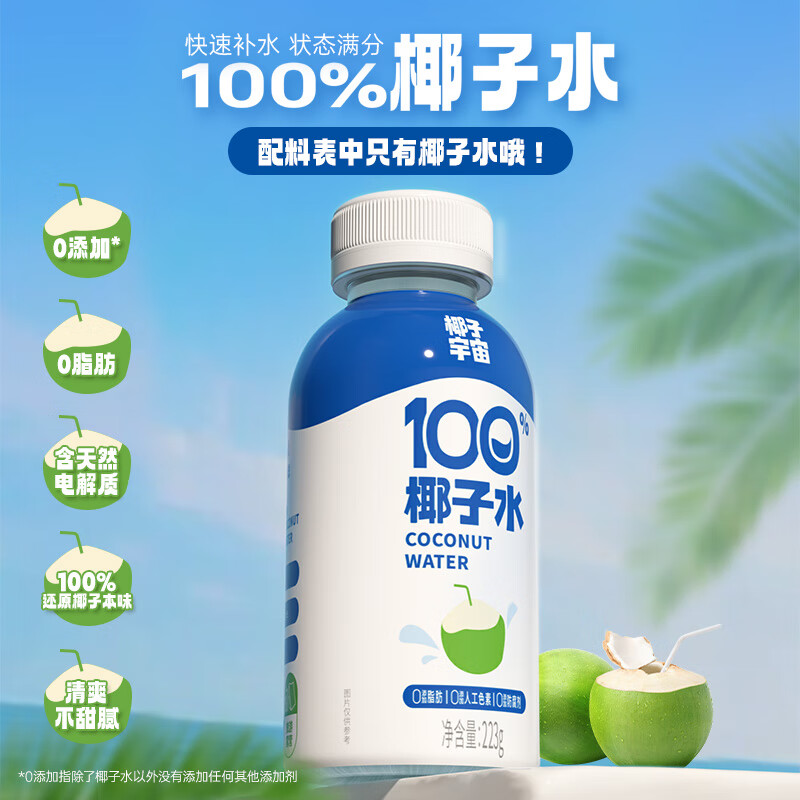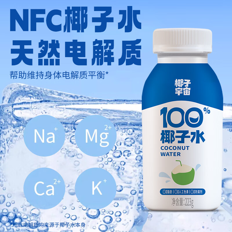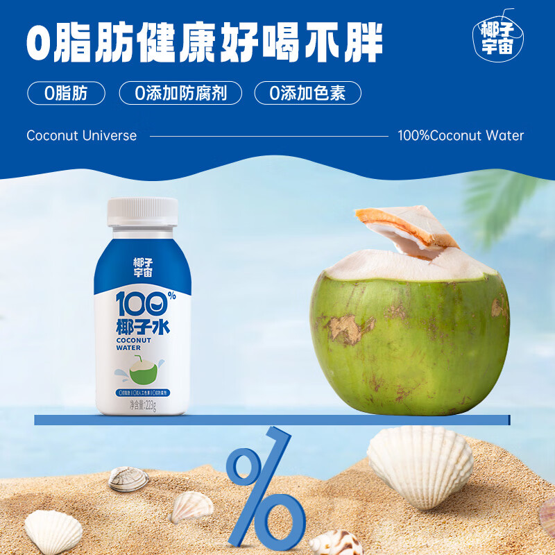 禅宝椰子宇宙100%天然椰子水,为您带来清爽与活力!每瓶223g的椰子水富含电解质,是运动后补充能量的理想选择。此整箱装包含10瓶,一次购买尽享实惠。
