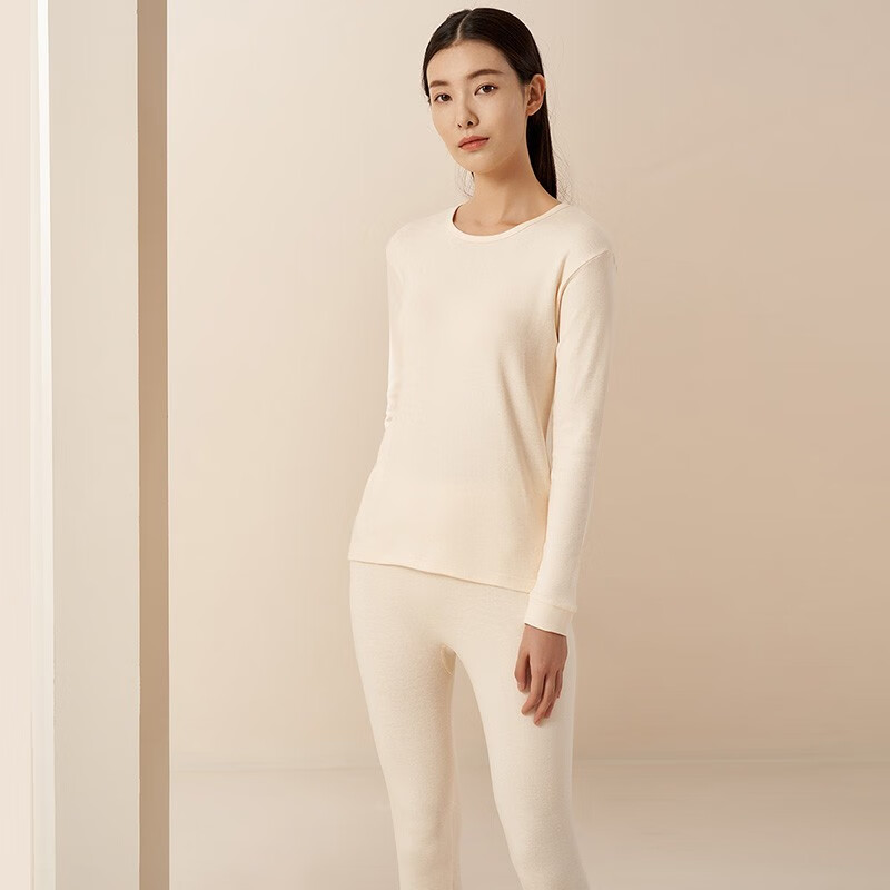 宜而爽 100%全棉秋衣秋裤套装圆领打底纯棉毛衫纯棉保暖内衣,女款浅玉XL尺寸,在寒冷的秋季为您带来温暖和舒适。