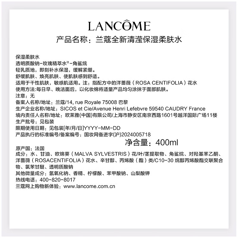 兰蔻全新清滢保湿粉水柔肤水 400ml 新版大粉水 温和补水保湿 – 仅售249元