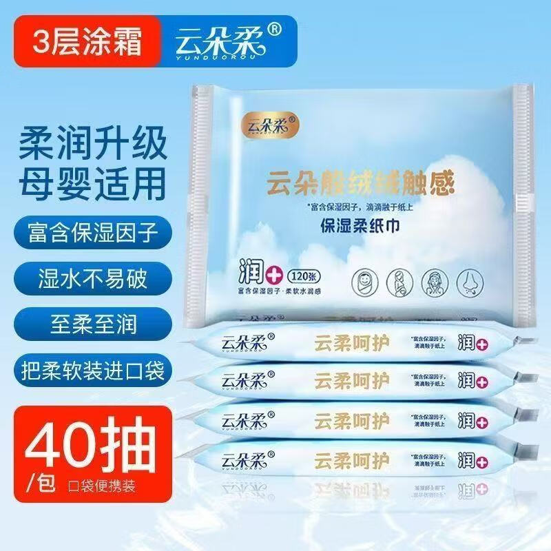 云朵柔乳霜纸,保湿柔软干湿两用,3层40抽*10包,超值优惠价只需7.99元!