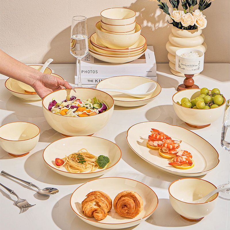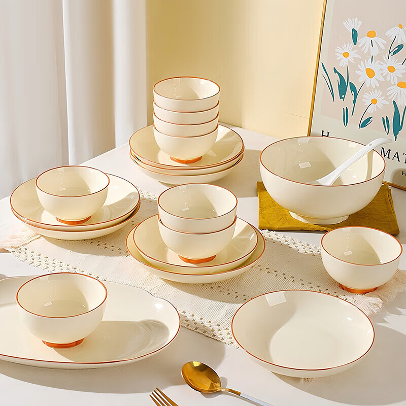 这款茶卡家用餐具套装是京喜出品的高品质陶瓷产品。采用高温烧制工艺制成,不仅保证了耐用性和安全性,其奶油白的色泽搭配简洁的设计风格更是让厨房变得更加高雅明亮。