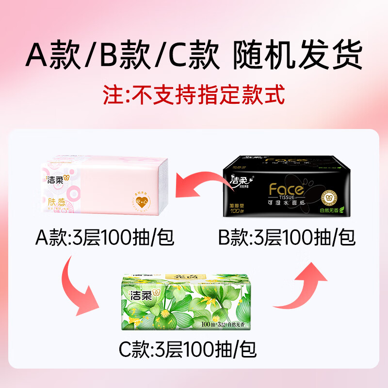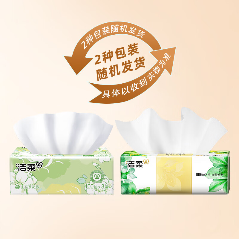 洁柔抽纸山室茶花香纸巾实惠家用整箱可湿水面巾纸餐巾纸擦手 3层 100抽*3包