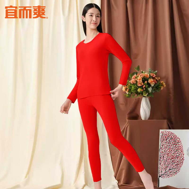这款内衣采用抑菌防螨技术,有效减少细菌滋生,保护您的健康;同时具有良好的透气性和亲肤性,适合长时间穿着。宜而爽内衣套装是本命年大红款式,充满喜庆气息。
