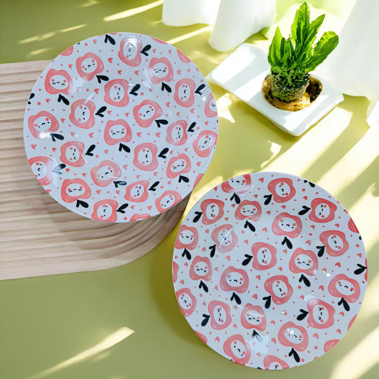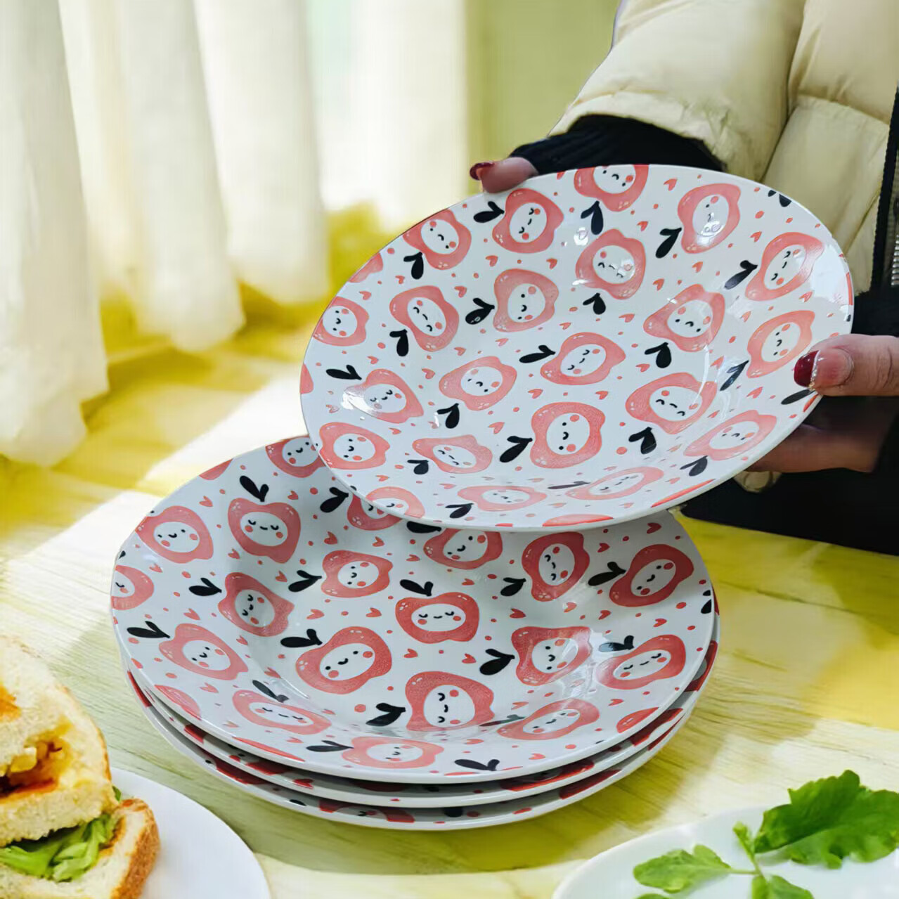 这款8英寸盘2个的卡通苹果款面碗,采用优质陶瓷材料制作而成,拥有出色的耐热性和耐用性。不仅外观美观、色彩鲜艳,更能满足您的日常需求。