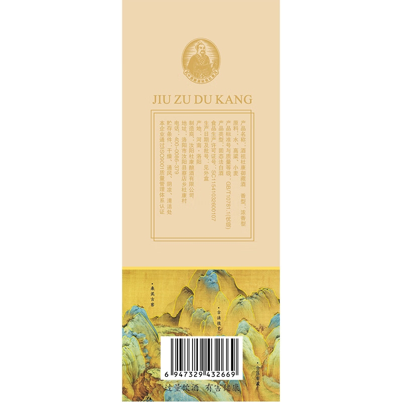 杜康 酒祖杜康 酒祖御藏 浓香型白酒,精选上等五粮原料酿制,具有独特的香气和口感。此款为小容量单瓶装,非常适合酒类爱好者进行品鉴体验。