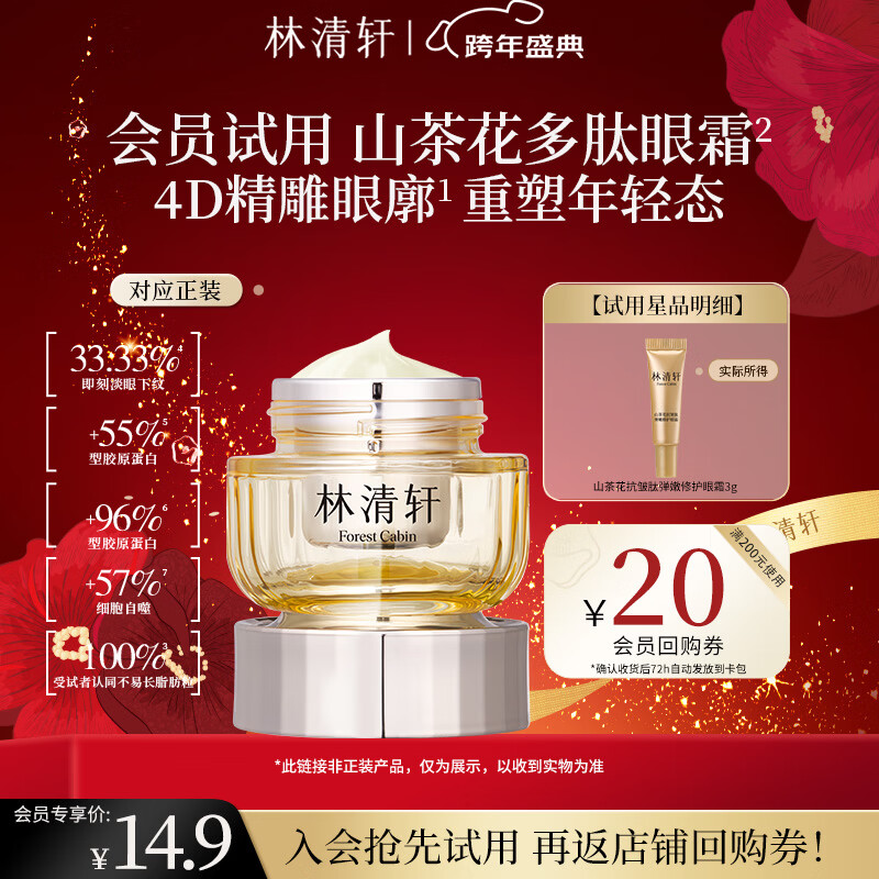 无论您是日常护肤还是想要对抗眼周老化问题,林清轩山茶花抗皱肽弹嫩修护眼霜都是不二之选。