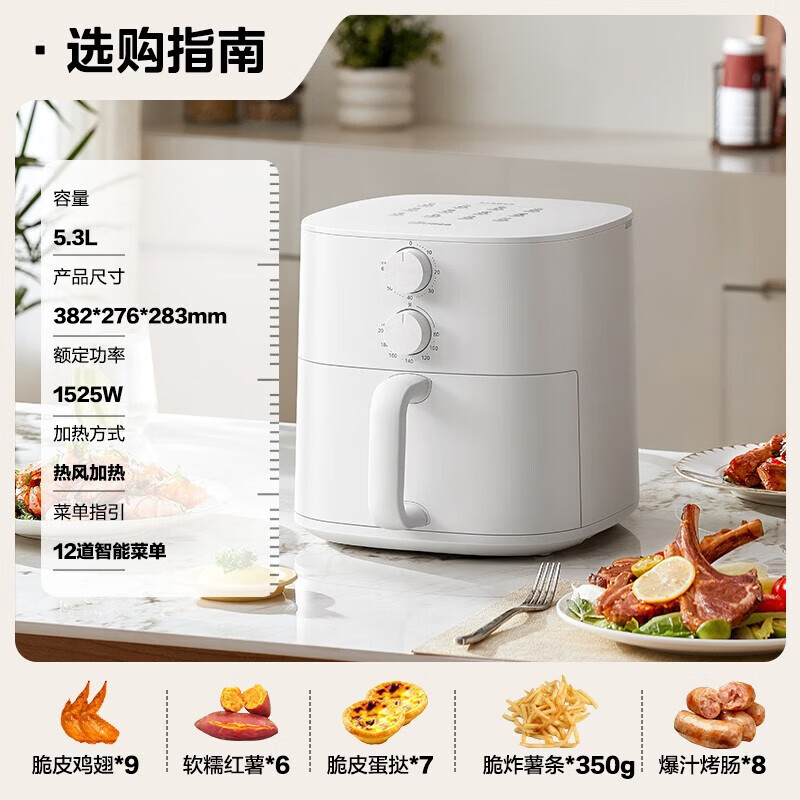 这款美的空气炸锅KZE5313,不仅拥有大容量的5.3升空间,可以一次性满足全家人的需求。其采用的是全金属腔体设计,并且具有不沾易洗的特点,让您的厨房生活更加便捷。