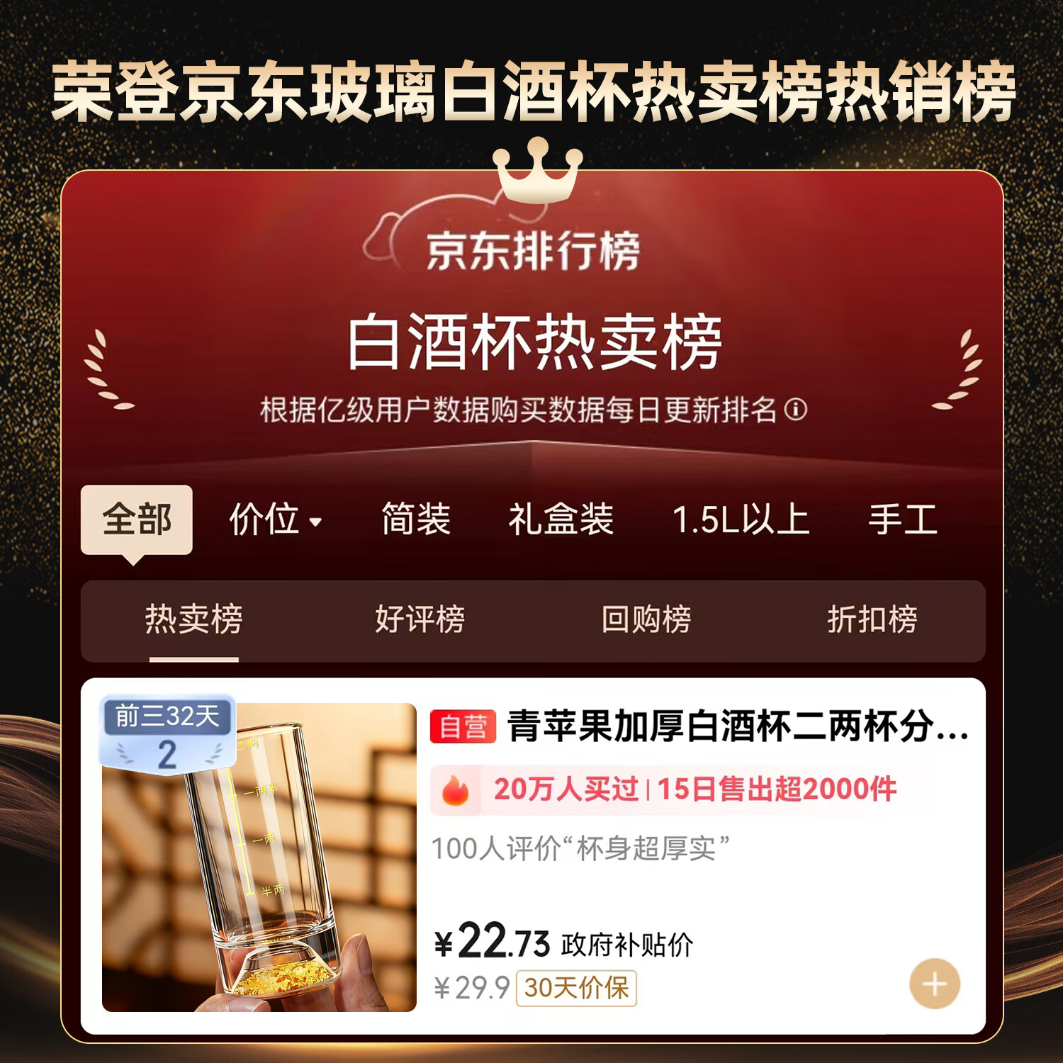 新年到来之际,这款青苹果新年手握金山金箔二两白酒杯为您献上独特体验。采用优质水晶玻璃材质,不仅手感舒适且透明度高,美观实用兼备。