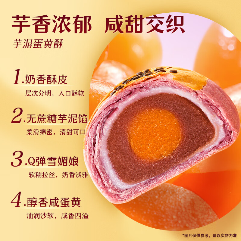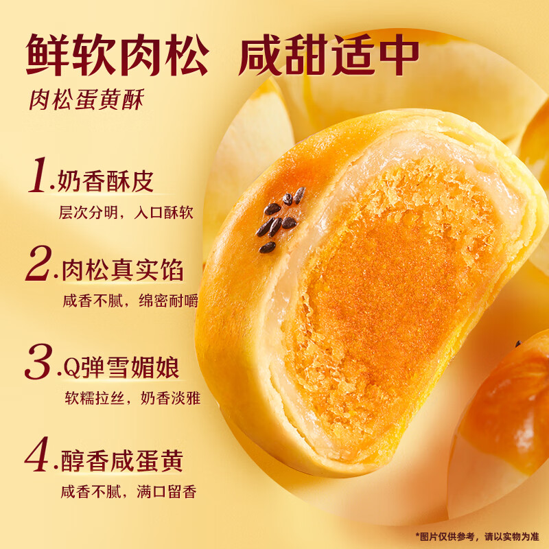 精选优质原料,搭配芋泥和肉松的独特口味,每一口都是满满的幸福感。蛋黄酥皮薄馅厚,口感酥脆而不腻。