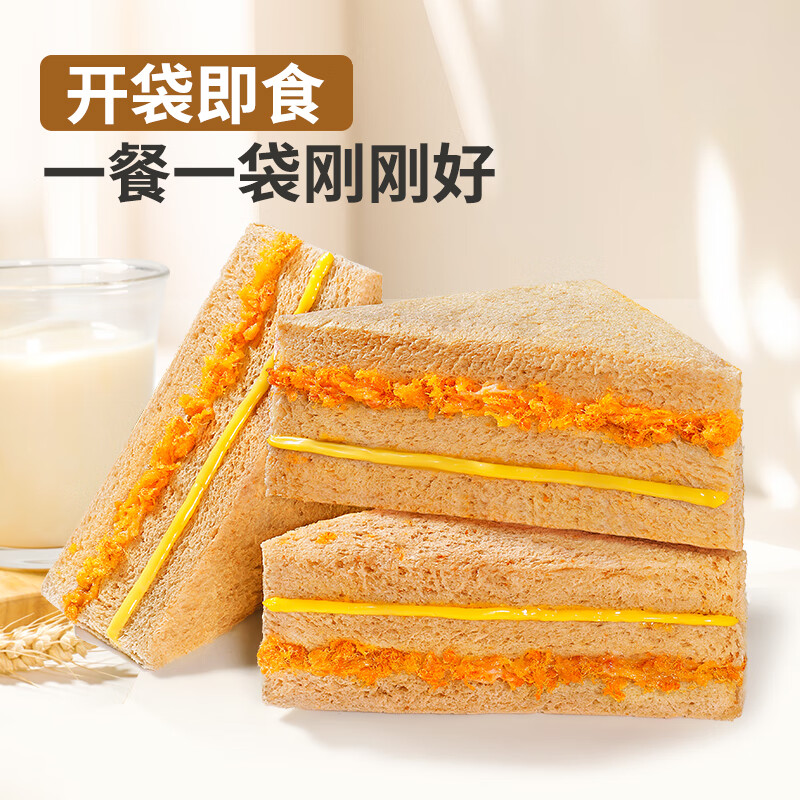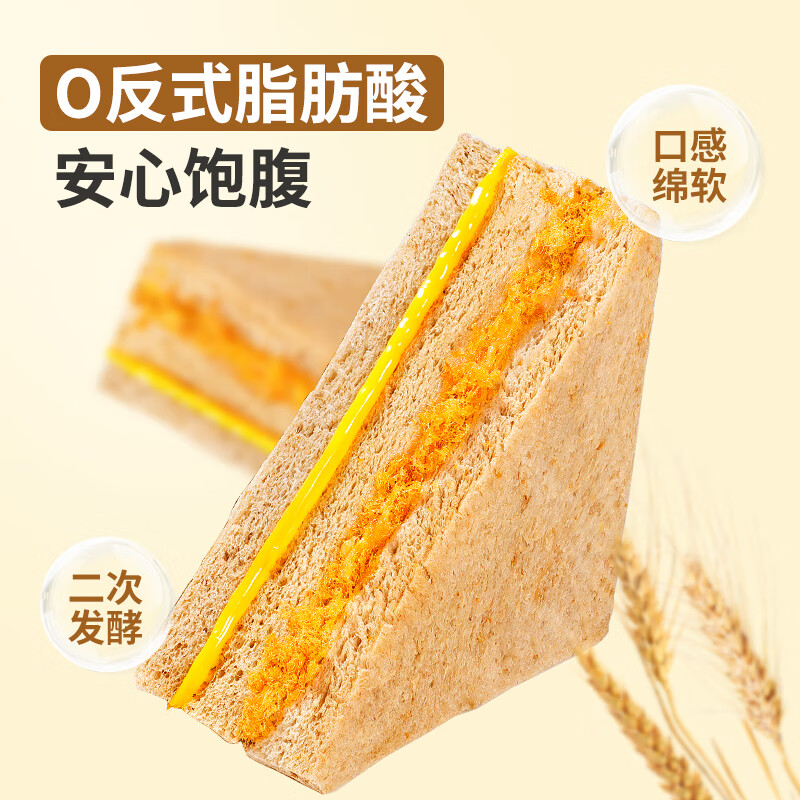 这款舌里黑麦肉松三明治夹心吐司面包是网红级的代餐零食,不仅美味可口,还是健康的早餐选择。390g的大容量包装适合全家享用或做为办公室休闲零食。