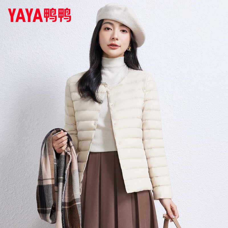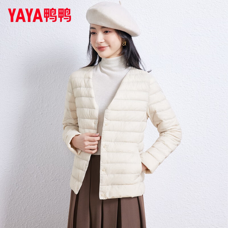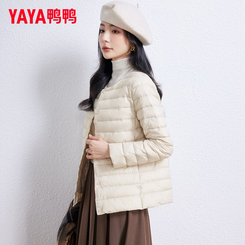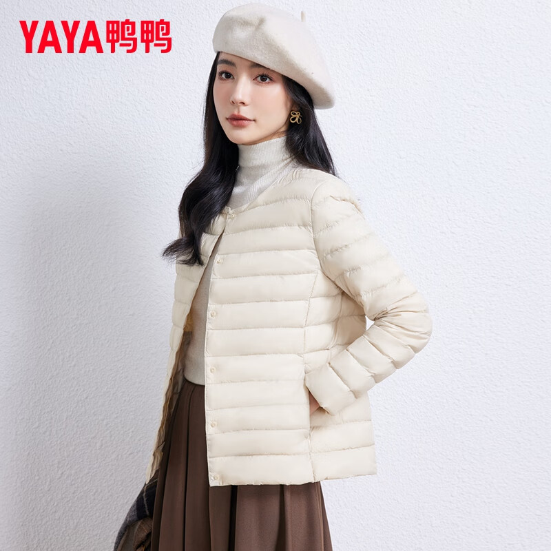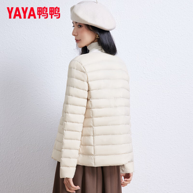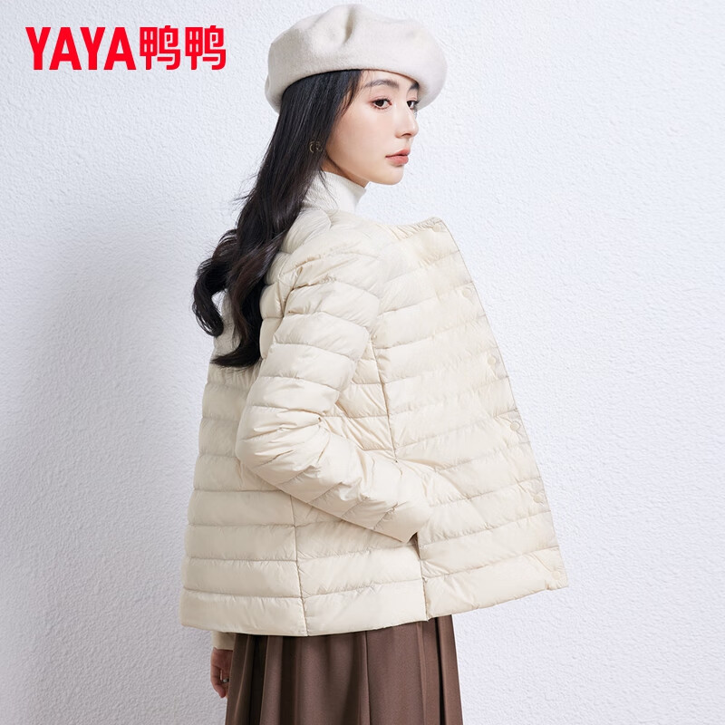 【产品名称】:鸭鸭(YAYA)佟丽娅同款轻薄羽绒服女短款韩版休闲保暖羽绒内胆轻便排骨外套男 米白色 M