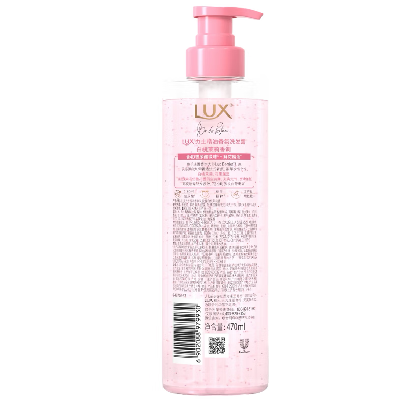 力士精油香氛洗发露470ml白桃茉莉香为您的日常护理带来全新的享受。这款产品不仅具有迷人的白桃茉莉香味,而且其独特的配方能够深层清洁头皮和头发,提供持久的香气体验。