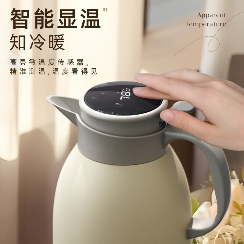 恩尔美(nRMEi)保温壶大容量家用316不锈钢热水壶 保暖72小时以上保温瓶宿舍暖壶 温馨白【智能显温+316内胆】2L