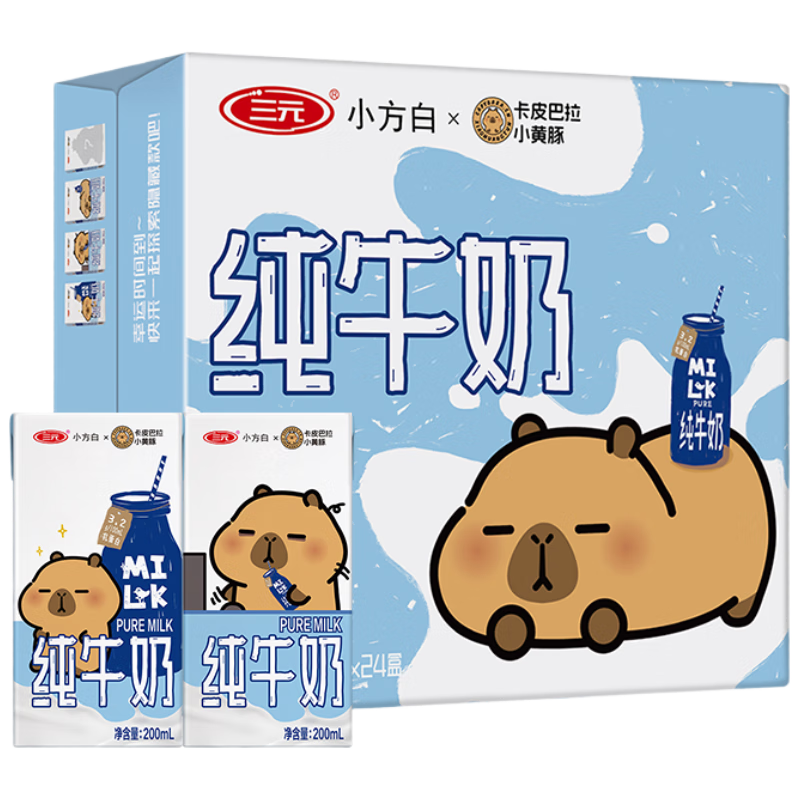产品介绍:三元小方白纯牛奶整箱装