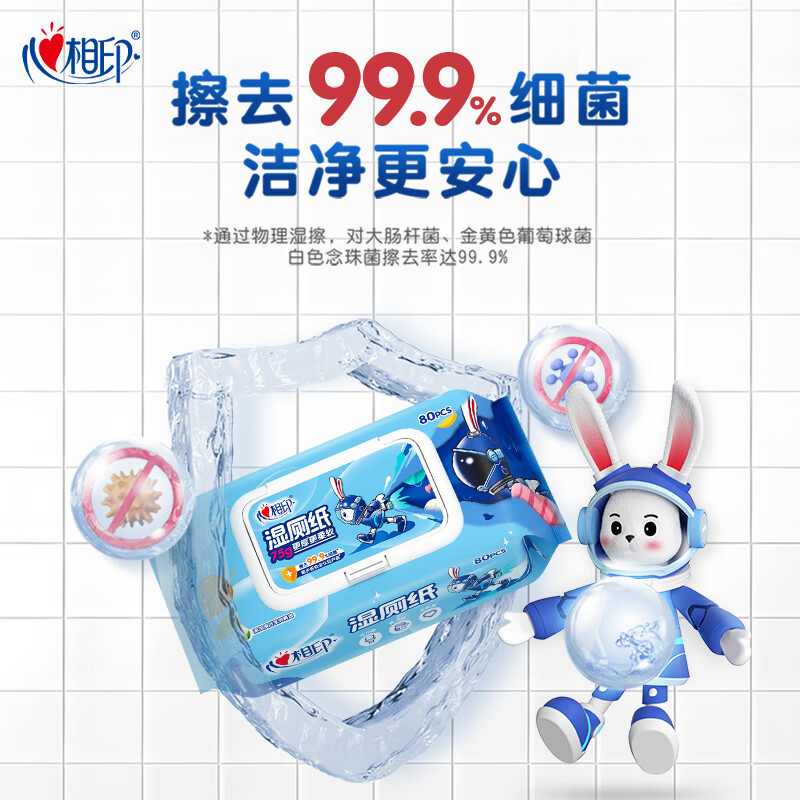 心相印湿厕纸小飞兔80片*单包装湿巾厕纸 75g 加大加厚更柔软 – 只售29.9元