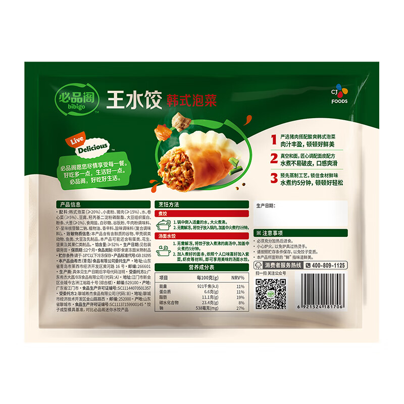 必品阁王水饺,美味与营养的完美结合!只需29.9元即可享受来自韩国的经典美食——泡菜味速冻饺子。